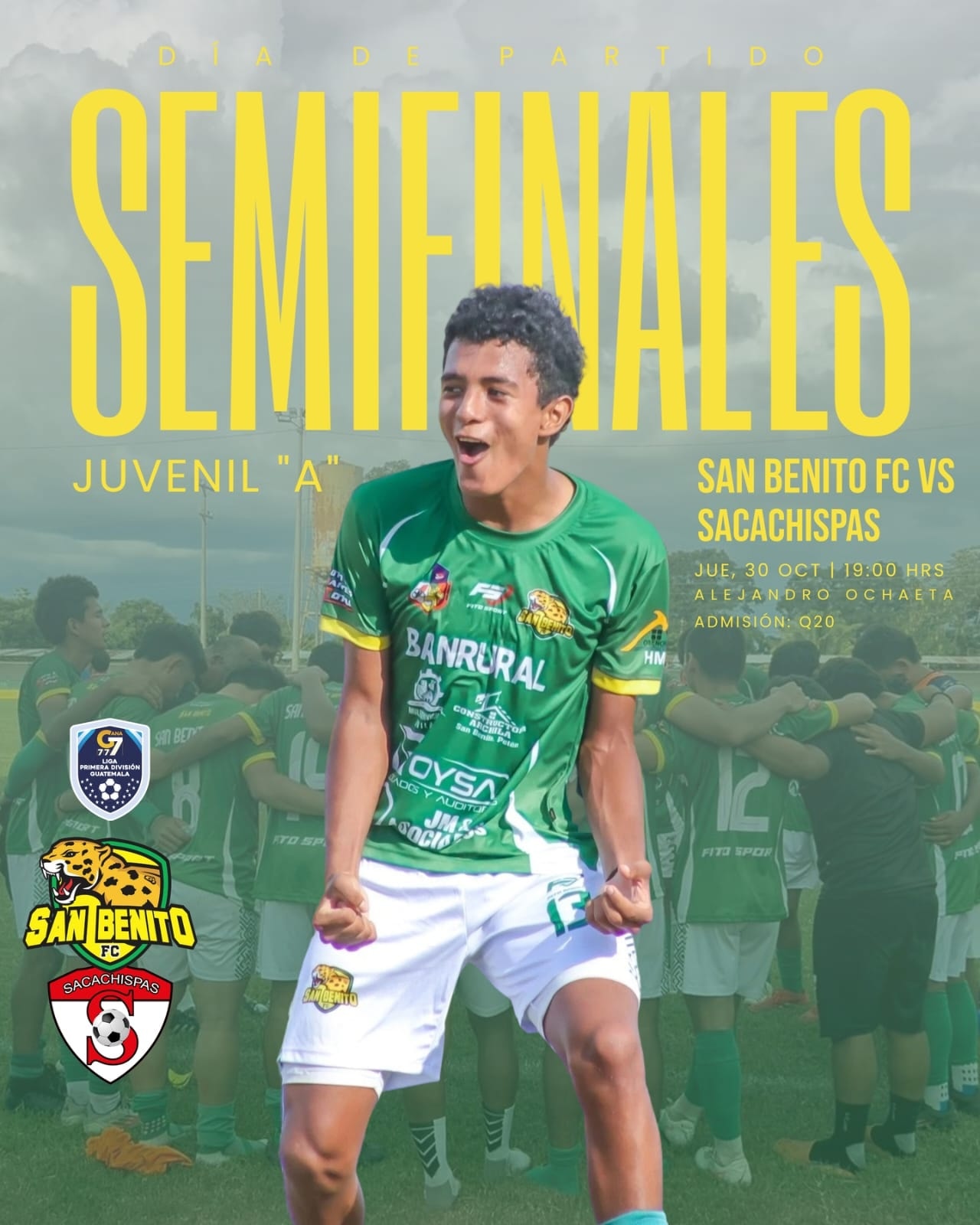 Deportes 🏆 ¡Semifinales Juvenil “A”! 🏆 Publicado 1 mes ago on octubre 28, 2025 Por Ervel Samuel Sandoval Campos Este jueves 30 de octubre a las 19:00 hrs, acompáñanos en el Estadio Alejandro Ochaeta para vivir una noche llena de pasión y fútbol.Nuestro equipo, San Benito FC Juvenil “A”, se enfrenta a Sacachispas en un duelo decisivo rumbo a la gran final. La entrada tiene un costo de Q20, tu apoyo es fundamental para impulsar a nuestros jóvenes talentos.Ven con tu familia, viste de verde y ¡hagamos sentir el rugido de San Benito en cada jugada! Ver menos — con Deportivo San Benito -Oficial-. Temas Relacionados:portada Continue Reading También le puede interesar ✨🌻 Elección y Coronación Reina Barrio El Porvenir✨🌻 Jornada de Planificación Familiar Clausura del Curso de Canastas Artesanales de Hilo Rígido y Bolsas de Toquilla Jornada Médica Destinada a Brindar Atención y Apoyo Integral a Vecinos del Municipio. Jornadas de Chapeo, Limpieza y Recolección de Desechos en Distintos Sectores de Nuestro Municipio Felicitamos a los Alumnos Egresados de CEEX Vista Hermosa por su Clausura del Ciclo Escolar 2025 Facebook