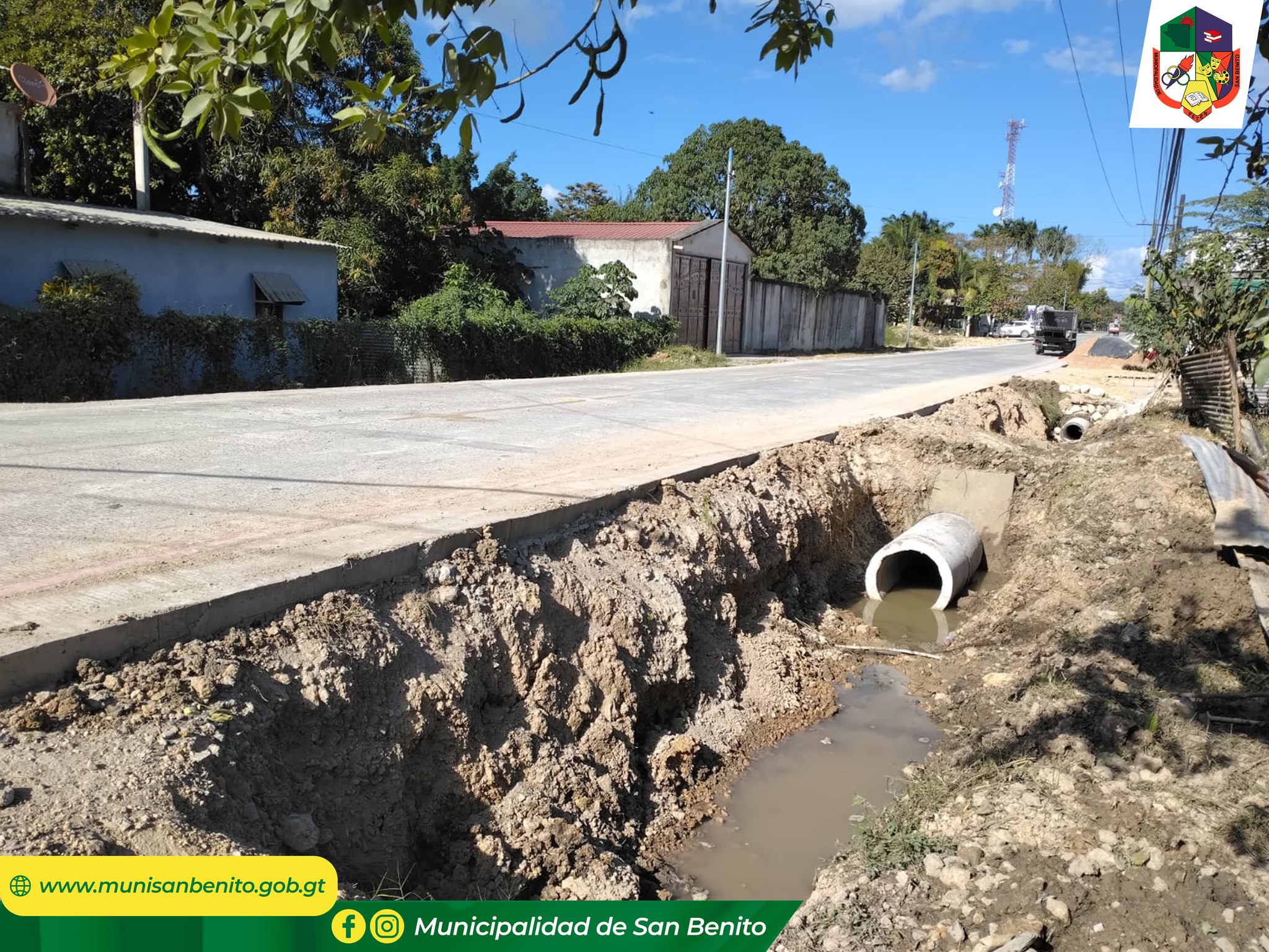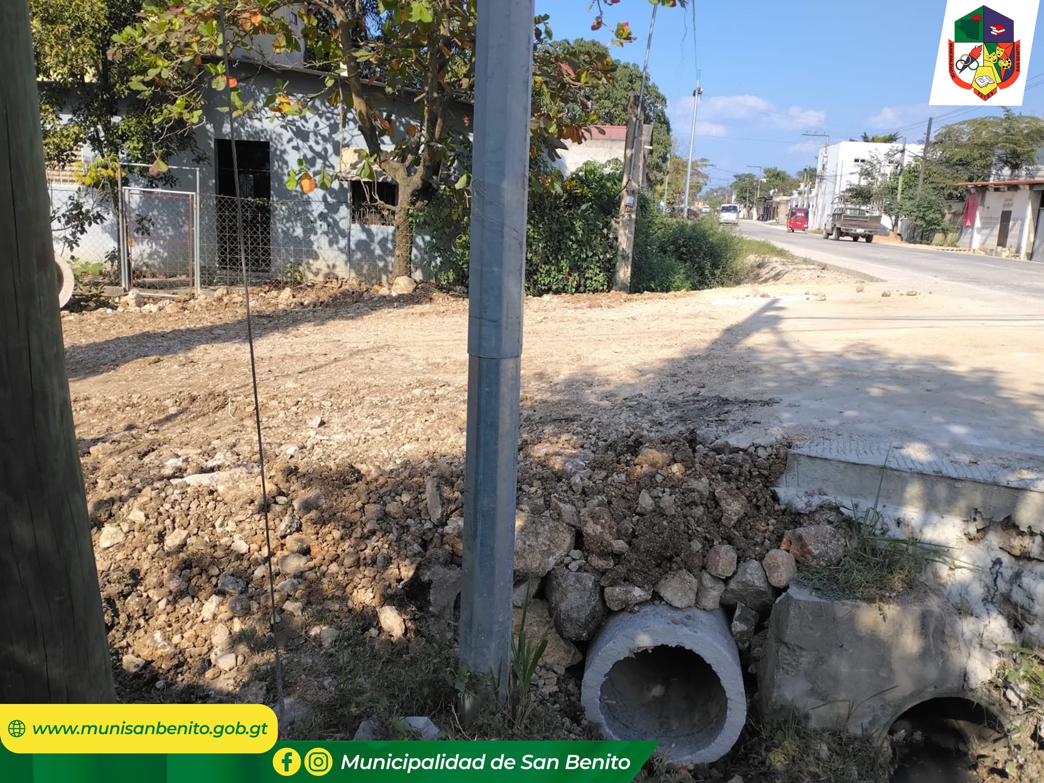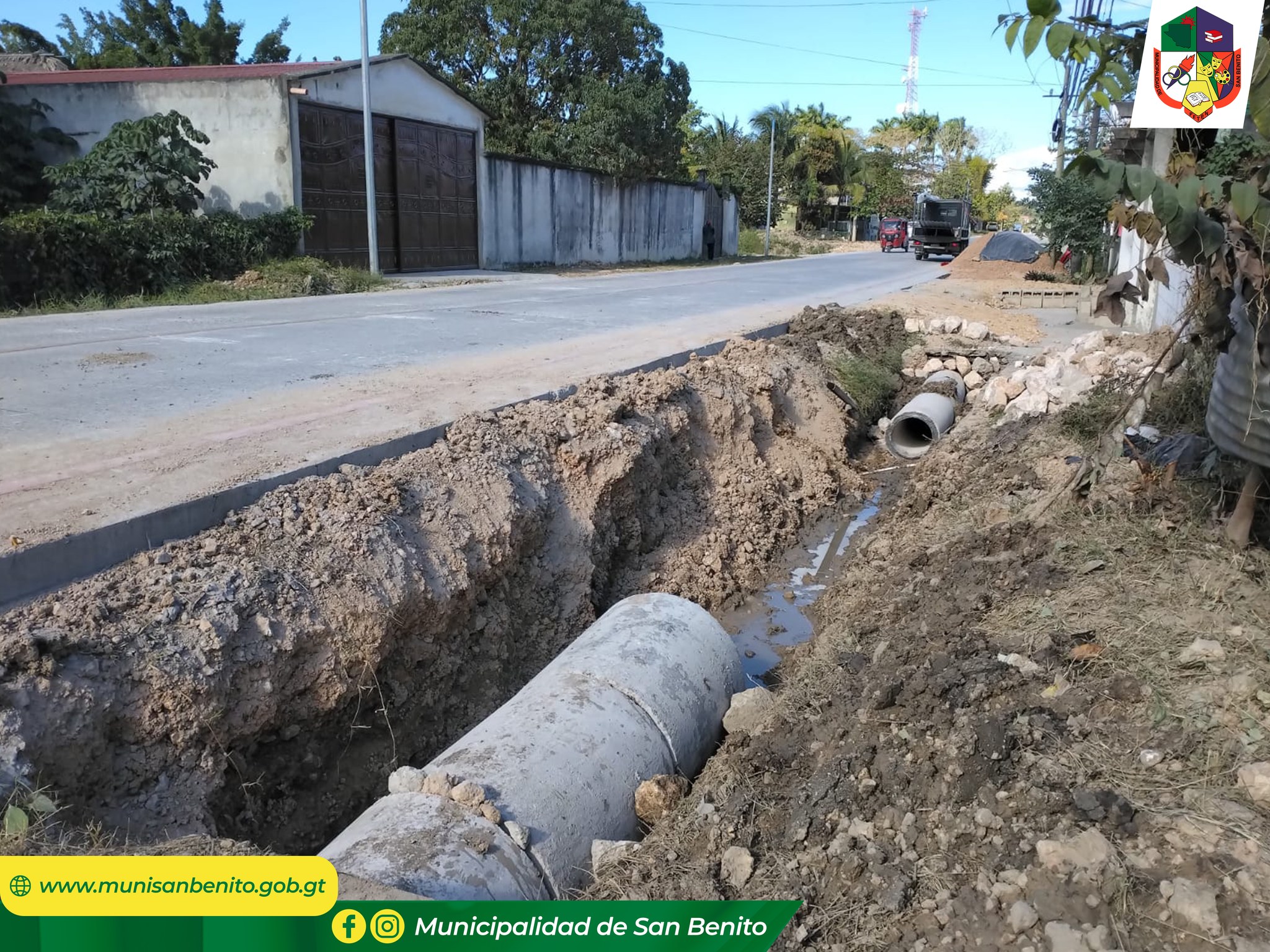 La Municipalidad de San Benito, a través de la Dirección de Servicios Públicos informa a la población que se están realizando trabajos de introducción de tubería para mejorar el manejo de aguas pluviales en la calle límite entre Barrio El Redentor y Barrio Candelaria.