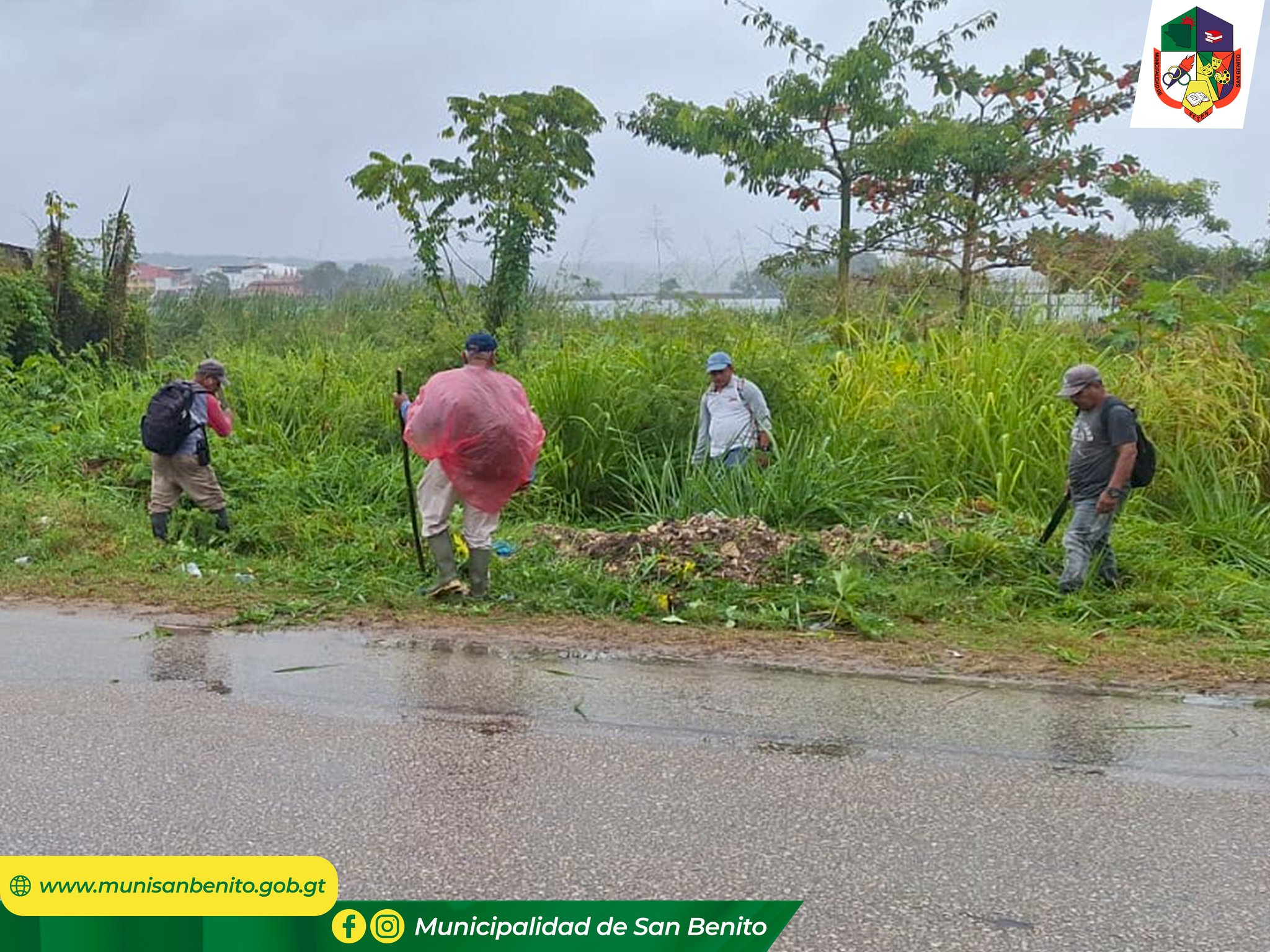 Ante las lluvias que se han registrado en nuestro municipio, la Dirección de Servicios Públicos de la Municipalidad de San Benito intensifica los trabajos en distintos sectores, realizando labores de mantenimiento, chapeo, recolección de desechos sólidos y despeje de áreas públicas y cunetas pluviales.
