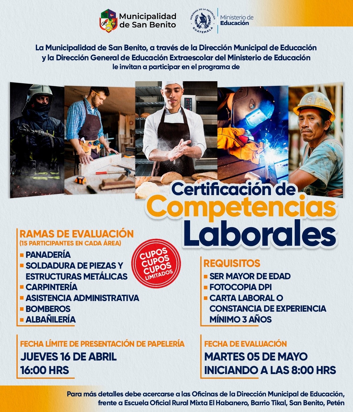 La Municipalidad de San Benito invita a participar en el programa de Certificación de Competencias Laborales.