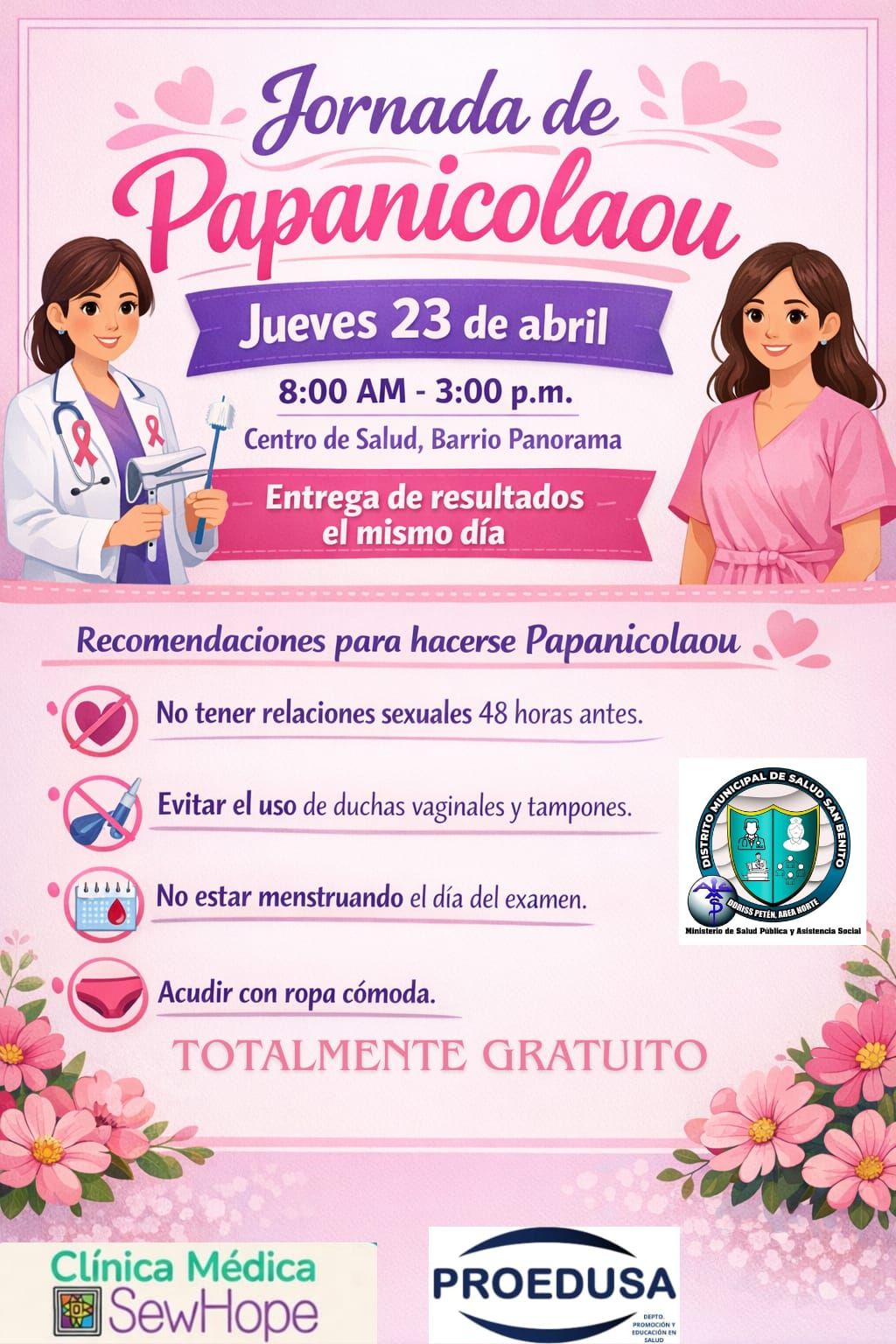 El Centro de Salud, Barrio Panorama invita a todas las mujeres a participar en nuestra jornada de Papanicolaou, un examen importante para la prevención y detección temprana del cáncer cervicouterino.