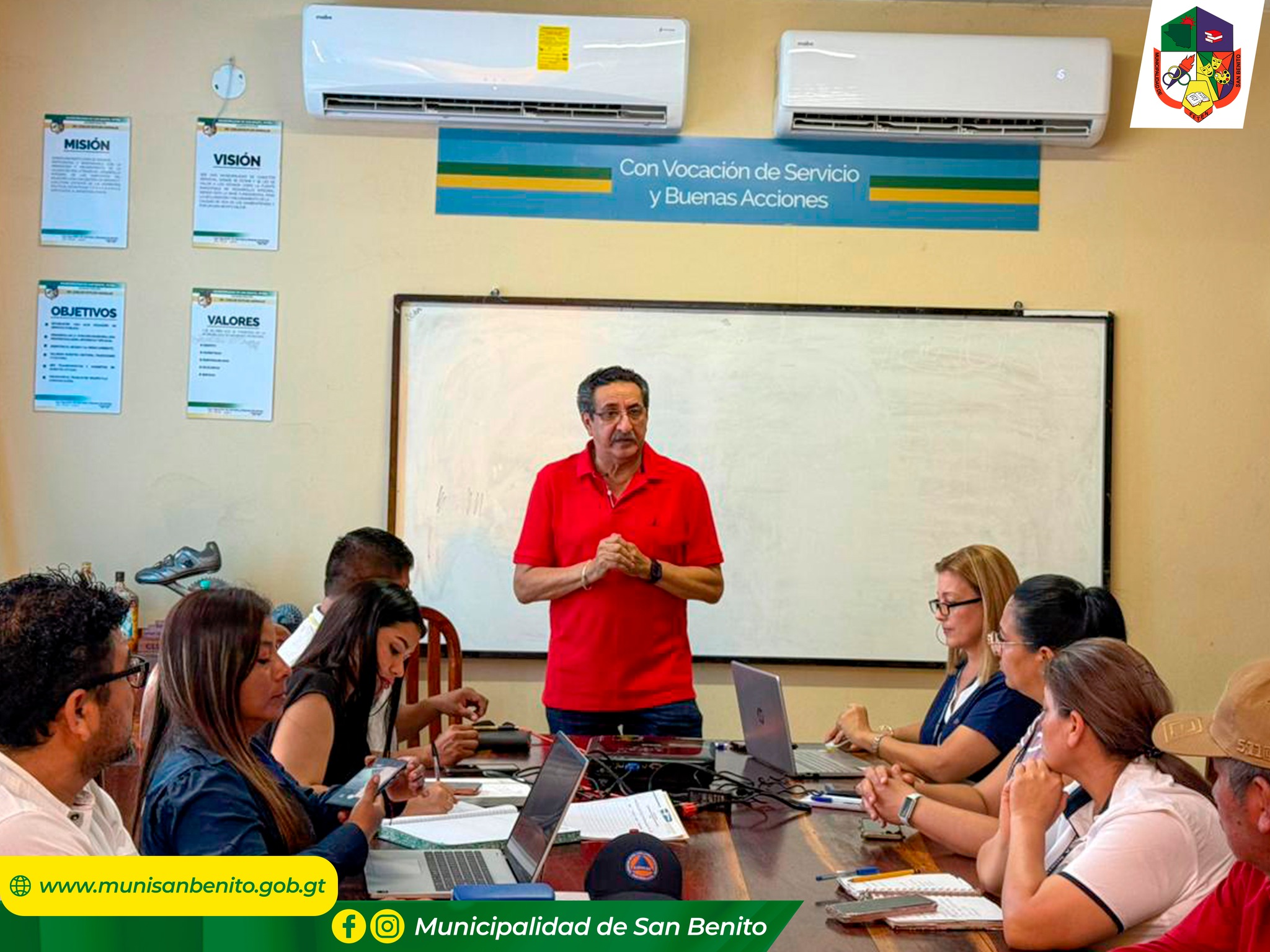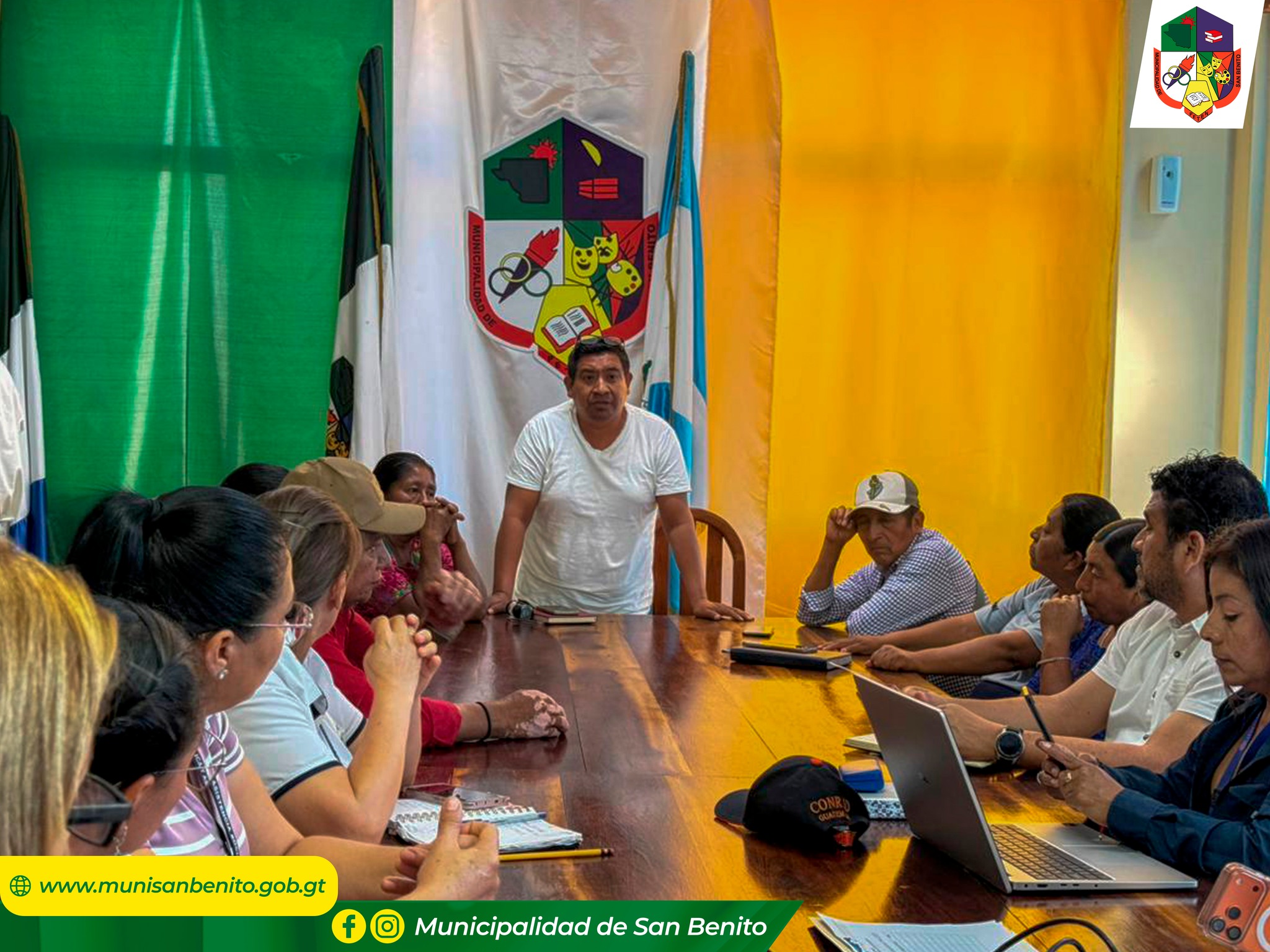 La Municipalidad de San Benito, en coordinación con el Distrito de Salud de San Benito, instituciones de primera respuesta, COMRED, la Policía Nacional Civil y dependencias municipales, participaron activamente en una reunión interinstitucional en la cual se estableció el Centro de Operaciones de Emergencia (COE), derivado de la alerta anaranjada por el incremento de casos de sarampión en el municipio.